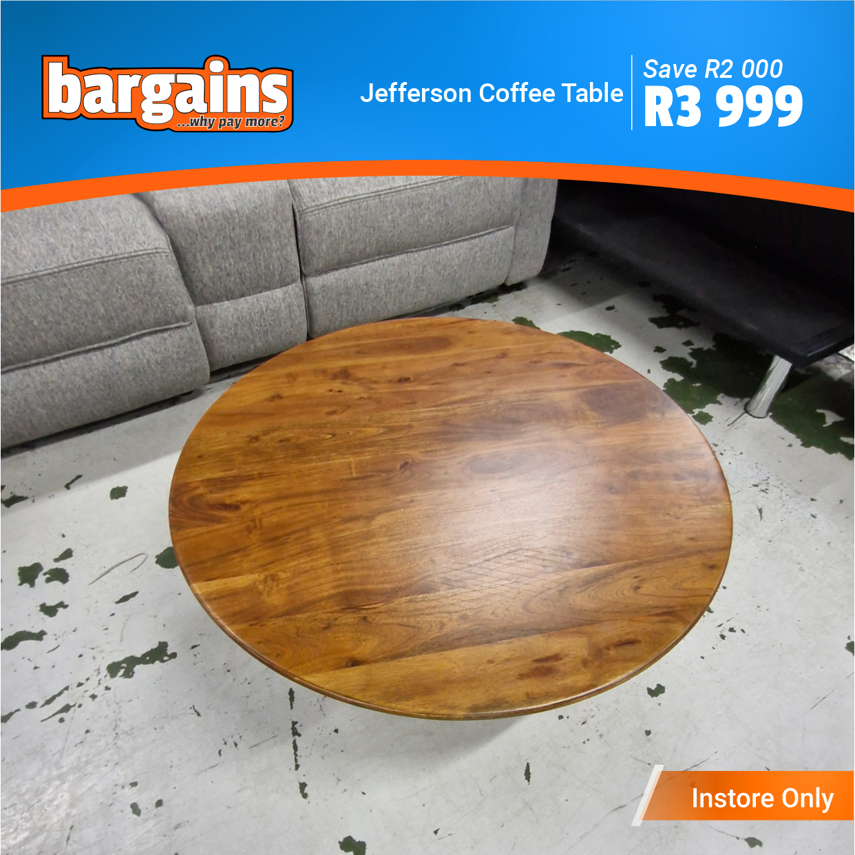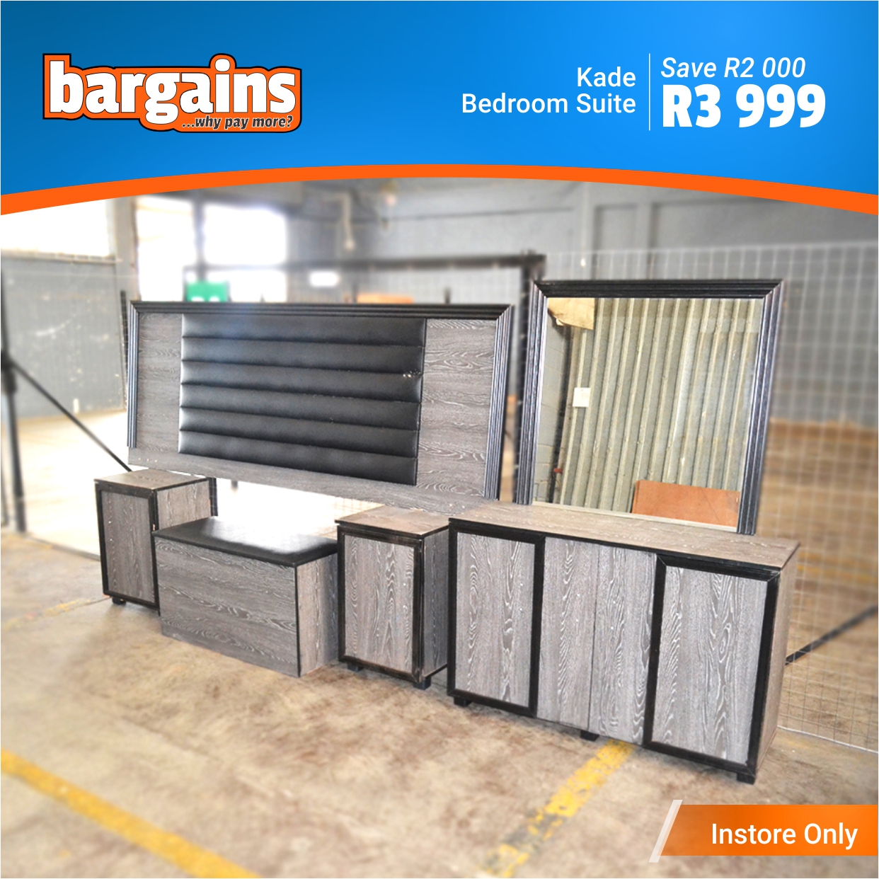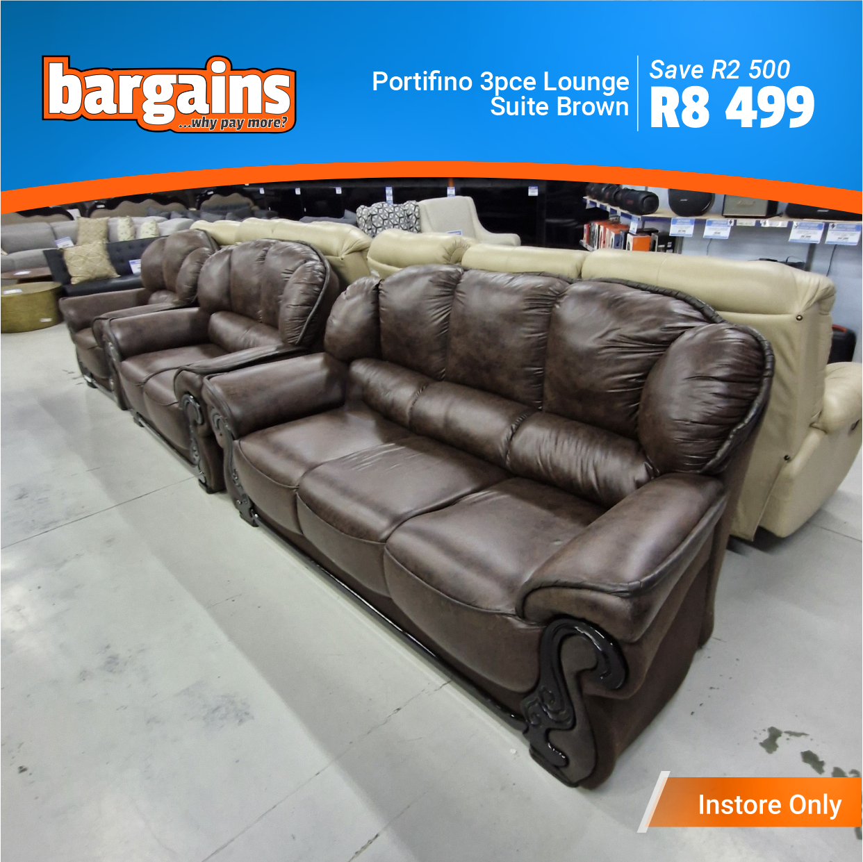 These furniture clearance items are available for viewing at Bargains in The Hub Shopping Center, Beacon Bay.