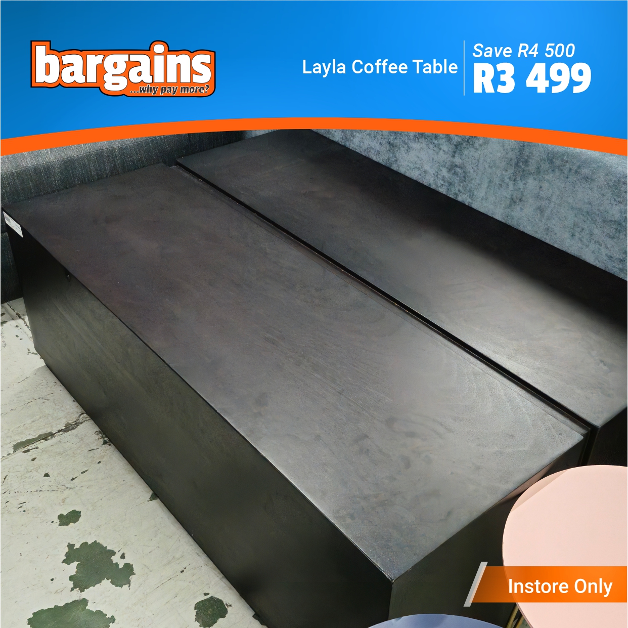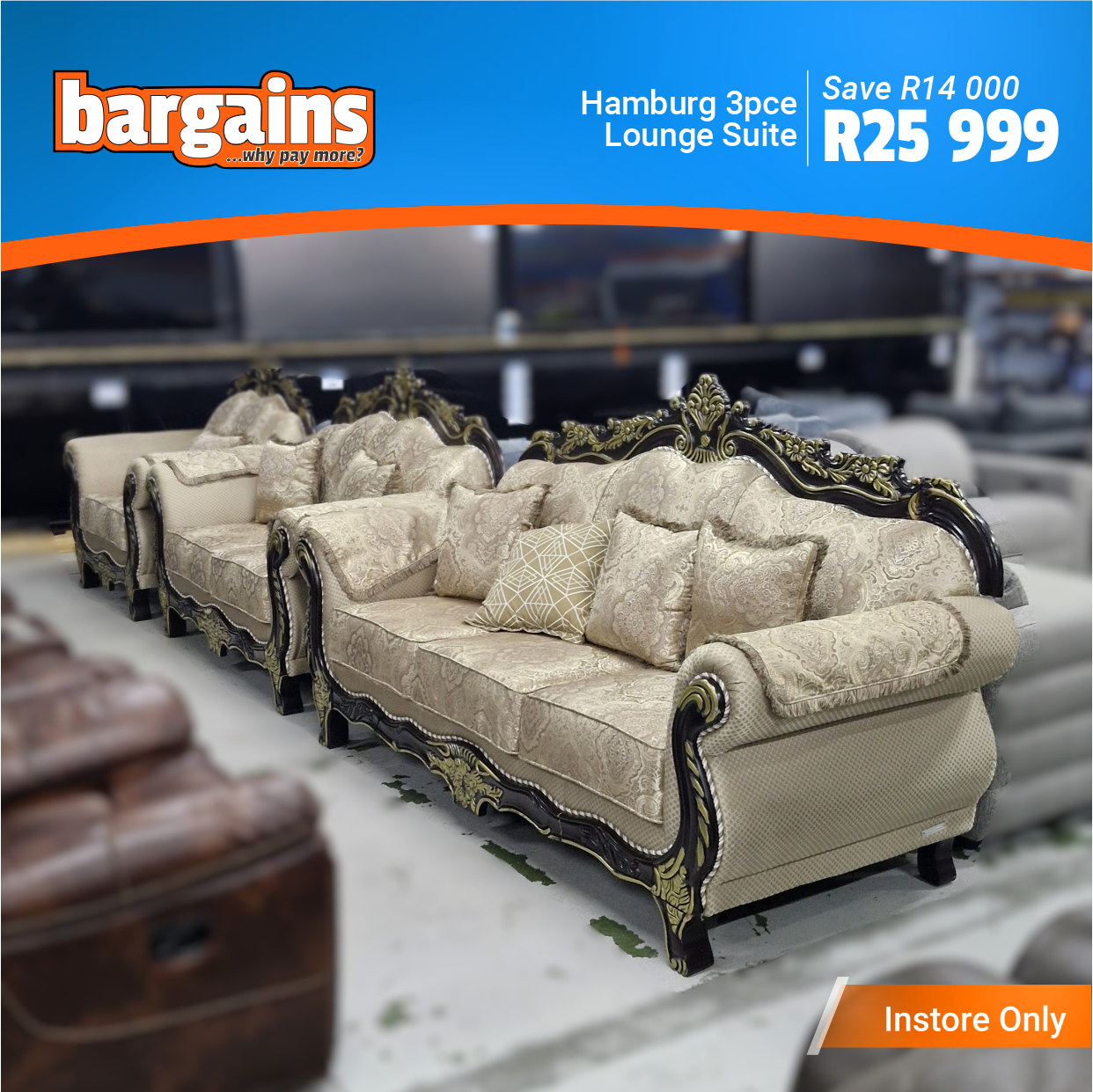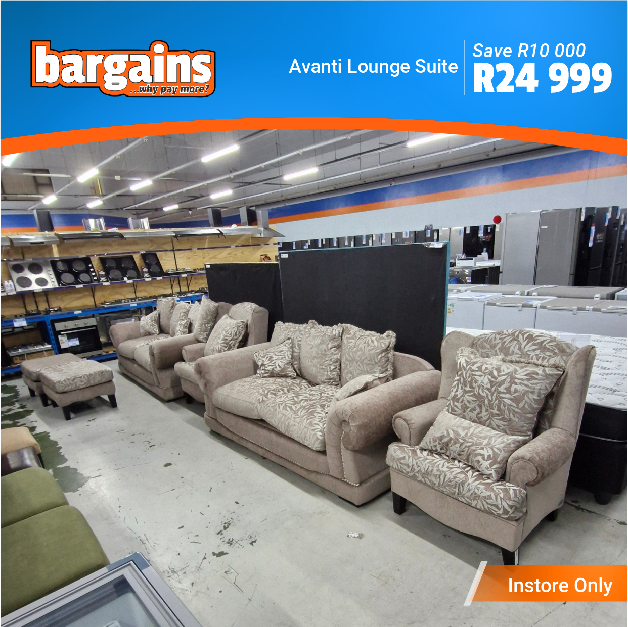 These furniture clearance items are available for viewing at Bargains in The Hub Shopping Center, Beacon Bay.