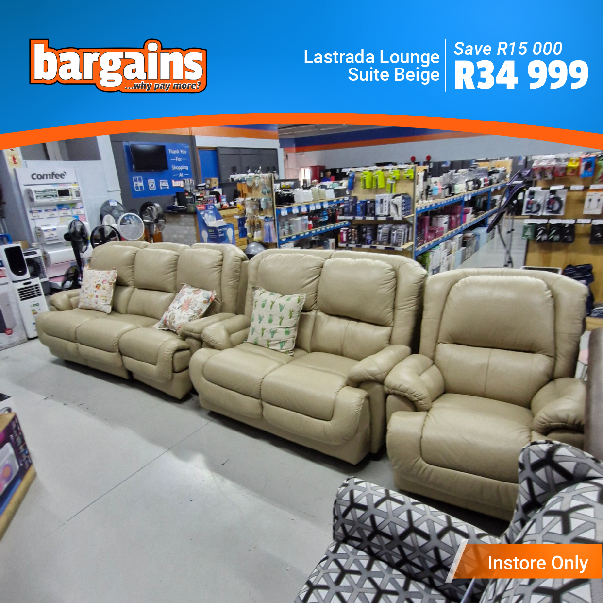 - Available in-store at Bargains in The Hub Shopping Cetner, Beacon Bay