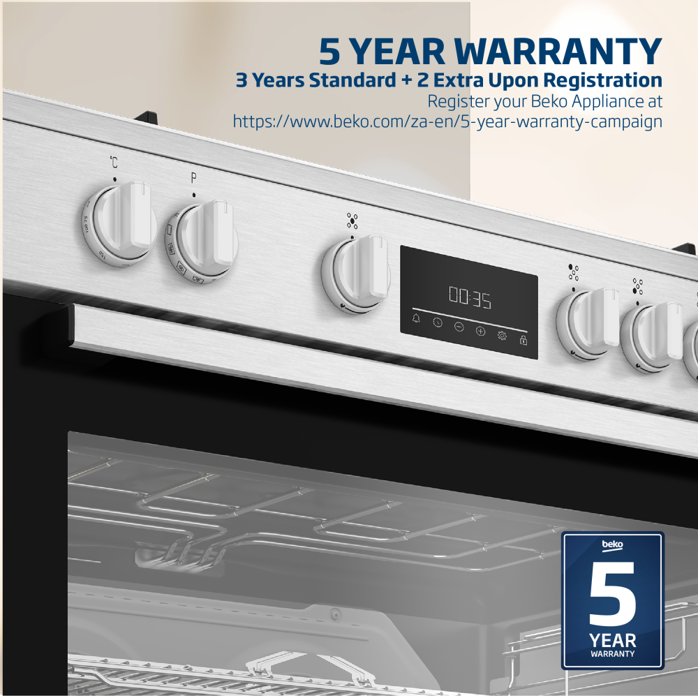 The Beko 90cm Gas/Electric Cooker – BGTW11225EX is designed to make your cooking experience quicker, safer, and more efficient. With features like Halogen Illumination, you can monitor your cooking without opening the oven door, keeping heat inside. The high-efficiency gas burners cook faster and use less gas, perfect for busy days. Plus, the Gas Safety feature automatically cuts off gas flow if the flame goes out, offering peace of mind.