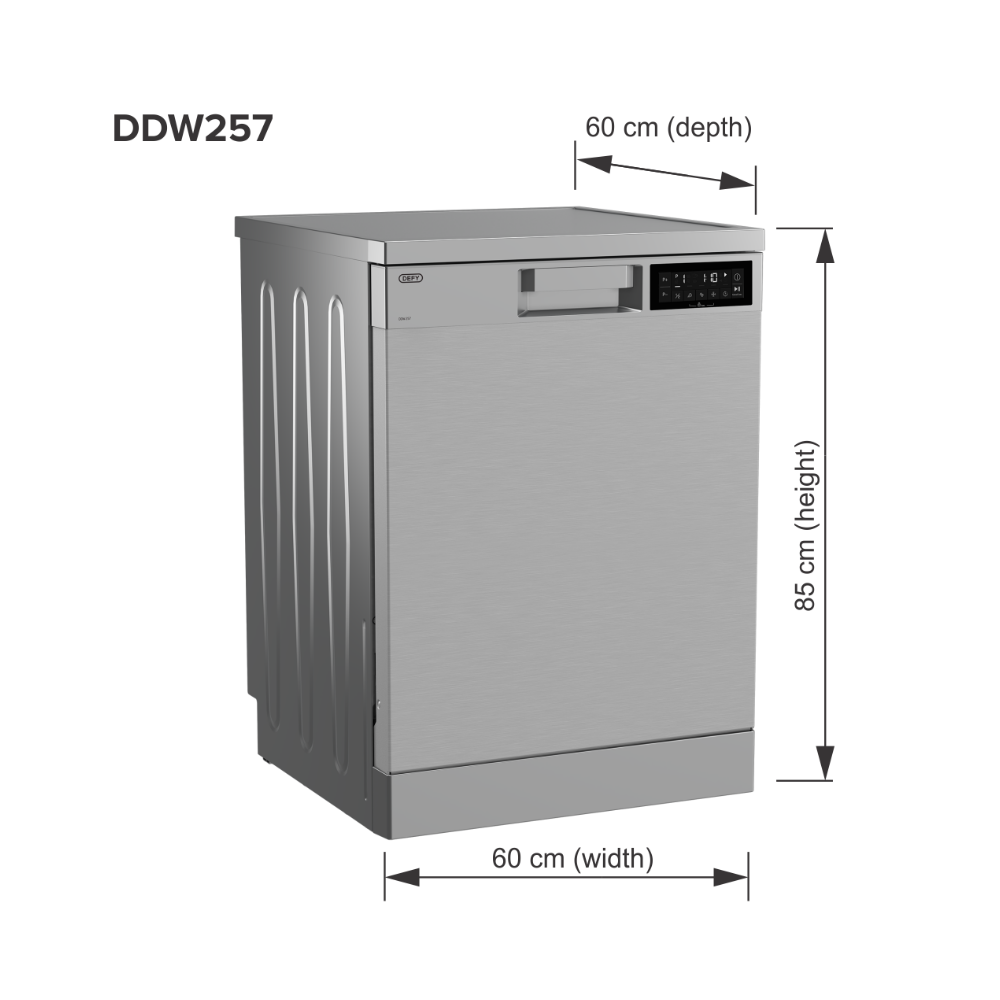 The Defy DDW257 is a high-capacity 15-place dishwasher built for larger households that require powerful performance with smart efficiency. Designed to handle bigger loads with ease, it combines advanced wash functionality with flexible interior options, while the fingerprint-proof Inox finish helps keep the exterior looking clean and smudge-free with minimal effort.