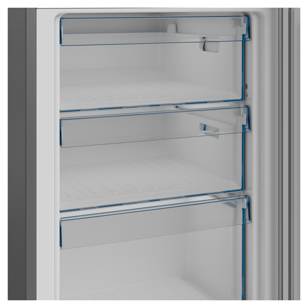 Meanwhile, static cooling keeps temperatures steady and prevents flavour transfer between compartments. LED ceiling lighting shines bright; therefore, you find items fast and waste less time. Consequently, glass shelves support heavy pots, and the reversible door adapts to any kitchen layout. Finally, annual consumption of only 254 kWh lowers electricity bills year after year.