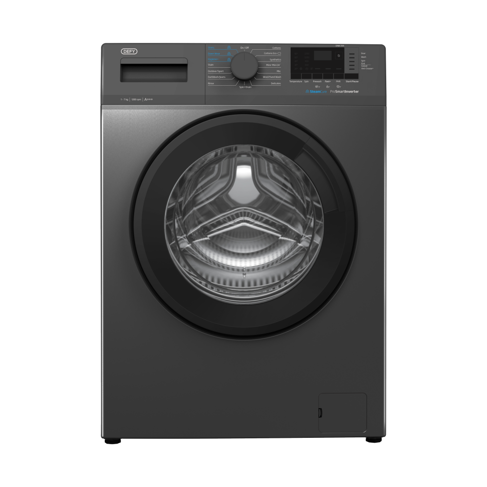 The Defy 7kg Front Loader Washing Machine (DAW394) is a compact, energy-efficient washer with SteamCure™ technology, a ProSmart inverter motor, 15 wash programmes, and safety features like child lock and unbalanced load control. Ideal for efficient, reliable cleaning in small to medium households.