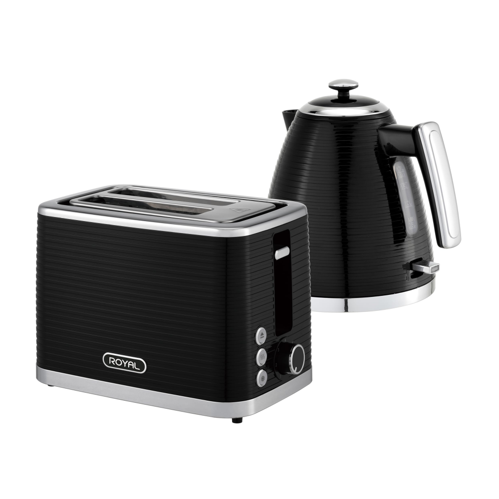 - Royal Homeware Toaster + Kettle Set (Black) – K618ONST818