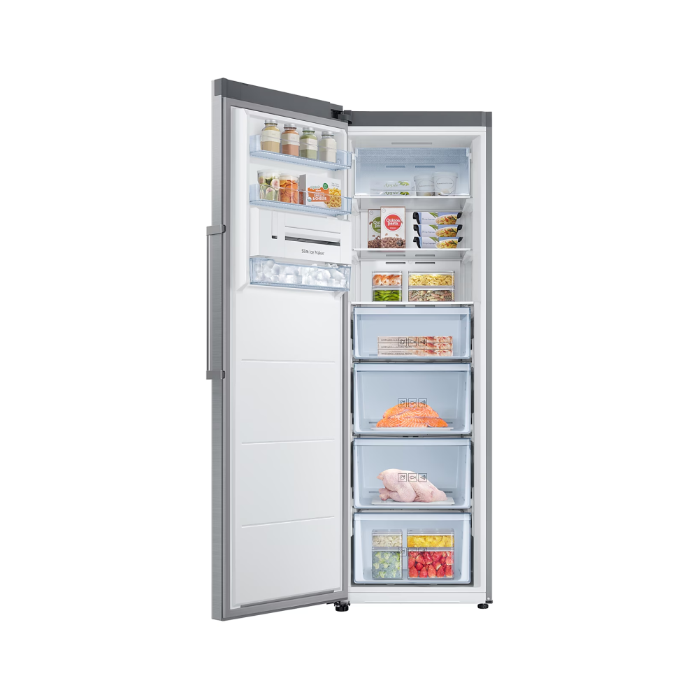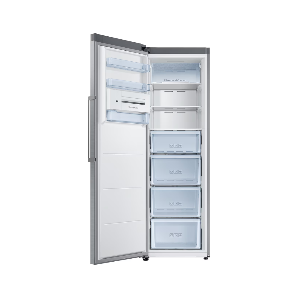 The Samsung 315L Upright Freezer offers large storage, frost-free convenience, and modern style. No-Frost technology keeps food fresh without manual defrosting. All-Around Cooling ensures consistent temperatures, while the Power Freeze function locks in freshness quickly.